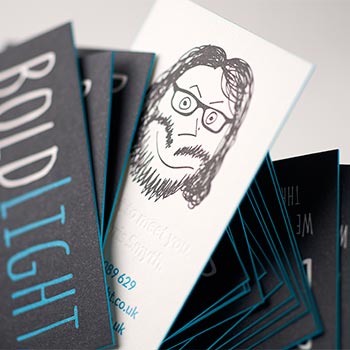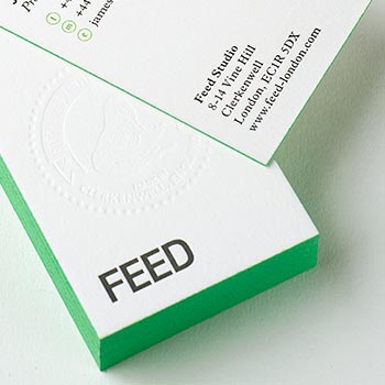 Blind debossed & edge painted letterpress business cards on Colorplan card