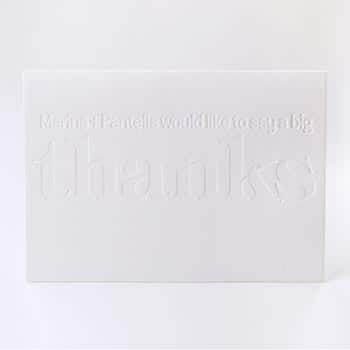 Blind debossed ‘Thanks’ card on Cranes Lettra card