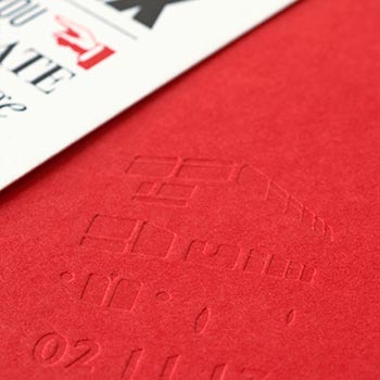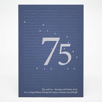 Blind debossed & letterpress printed anniversary invitation on 700gsm card stock