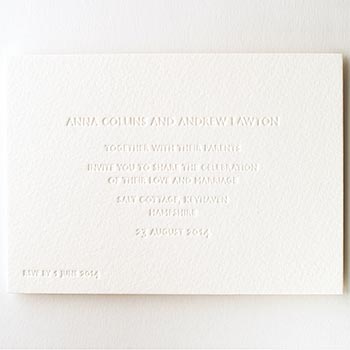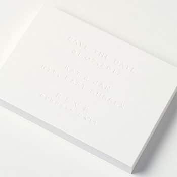 Blind debossed Save the Date cards on Gmund 600gsm cotton card stock