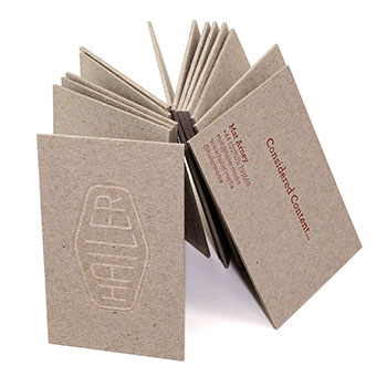 Letterpress business cards on heavyweight Cairn Stone recycled board