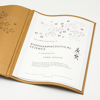 Letterpress printed diplomas for Tang Prize 2016 award winners