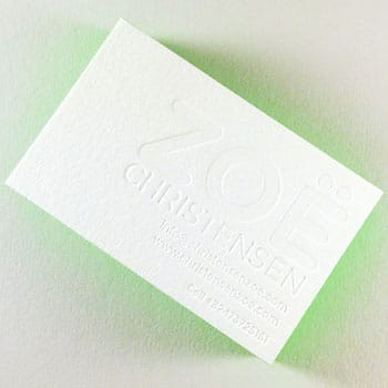 Letterpress printed and blind debossed business cards on heavyweight duplexed card