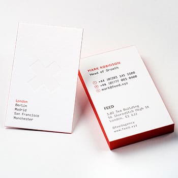 Blind debossed and edge painted business cards on heavyweight cotton card